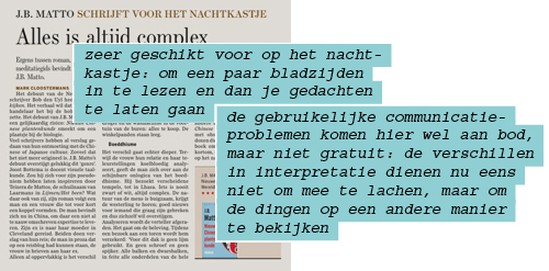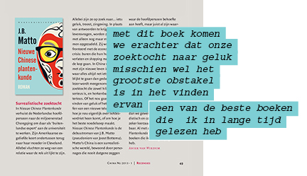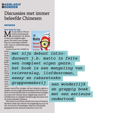 De Pers, 27 maart 2012 Publicatie korte interviews met de plaatselijke helden uit Chongqing waarop Nieuwe Chinese plantenkunde ten dele is gebaseerd.