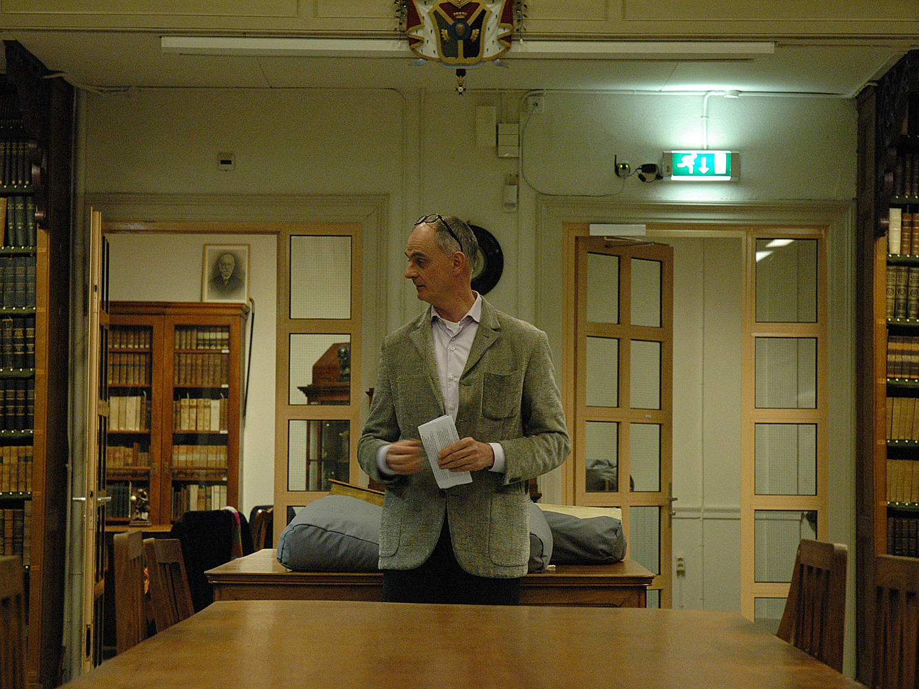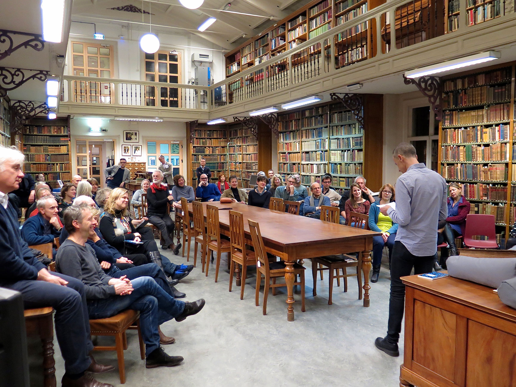 Uitreiking eerste De Spons In Ons aan Tijs Goldschmidt in de Artis Bibliotheek, december 2014.⇜⇝